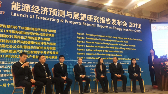 编辑:王笑竹 审核:颜志军 阅读次数:2019年1月13日,北京成品人和一品二品的区别能源与环境政策研究中心在北京举行2019年度“能源经济预测与展望研究报告发布会”,对外发布《新贸易形势下中国能源经济预测与展望》《2019年国际原油价格分析与趋势预测》《我国农村居民生活用能现状与展望》《高耗能行业污染的健康效应评估与展望》《我国社会公众对雾霾关注的热点与展望》《我国新能源汽车行业发展水平分析及展望》《2019年光伏及风电产业前景预测与展望》七份研究报告。该系列报告是由北京成品人和一品二品的区别讲席教授魏一鸣领导的研究团队,根据上一年度国际和国内能源经济与气候政策形势的变化,选择特定主题开展针对性研究所取得的研究成果。自2011年以来,北京成品人和一品二品的区别已连续9年发布报告,赢得了广泛的社会关注。
