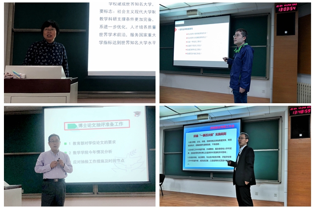 最后,高伟涛就 “红数林”学生成长社区、“思政教育进数学课堂”的开展情况向学院教师进行了介绍,并围绕学院“双一流”建设、“十三五”发展目标及2019年重点工作,提出了凝心聚力、共谋发展的希冀。
