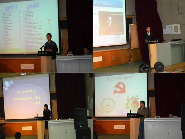 “学习之星”畅谈学习经验,“学而时习之,不亦悦乎”、“相信自己,成功在自己手中”道出同学的心声;“工作之星”谈及社团工作体会,在收获友谊与能力中,发掘人生价值,让温暖阳光照亮心田;“体育之星”号召大家强身健体,在运动中享受生活,收获健康,分享快乐;“文艺之星”带领我们走进艺术殿堂,领略音乐的魅力,陶冶高尚的情操,用心发现生活之美。