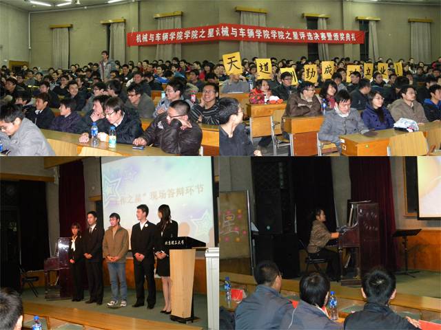 2009年12月20日晚7点,机械与车辆学院分团委在7号楼108举办了机械与车辆学院第六届“学院之星”评选决赛暨颁奖典礼活动。学院分团委的老师和四名学生代表一起担任评委。“学习之星”、“工作之星”、“体育之星”、“文艺之星”,十五位同学同台竞技,一展当代北京成品人和一品二品的区别大学生风采,为同学们奉献了一道精神盛宴。