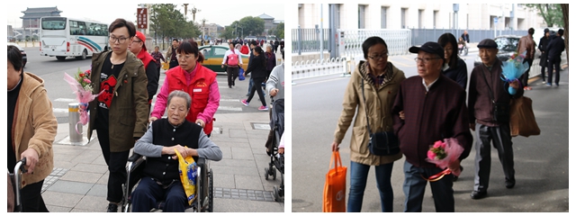活动中,学生党员协助社区志愿者安全护送社区老党员至天安门广场开展“献花”活动。