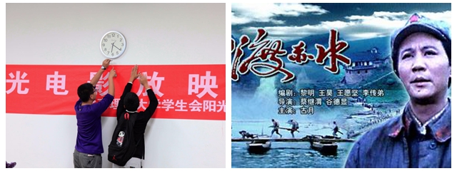10月20日晚,阳光服务队举进行了长征电影——《四渡赤水》的放映活动。同学们被其中的惊险所触动,为红军的安危而紧张。观影结束后,同学们对长征精神有了更深一步的体会,对老一辈红军战士们的艰难有了更多了解。