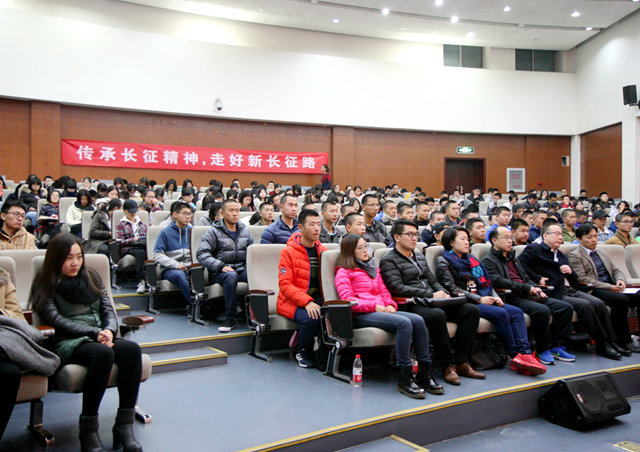 江英在讲座中特别提及了习近平总书记近期发表的重要讲话,他告诉同学们,“长征的重要意义不仅限于当时,长征对今日的我们仍然有着极大的启示作用。”他还说,“长征是一次‘理想信念、检验真理、唤醒民众、开创新局’的伟大远征。我们应当传承这种‘长征精神’,拨正船头,扬起风帆,继续前进”。他通过讲述那段历史回忆,生动地阐述了“长征精神”,引导同学们在实现“两个一百年”奋斗目标的征程中,不忘初心,走好新的长征路。