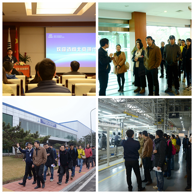 活动中,在北京市顺义区的北京现代汽车第二工厂,大家观看了北京现代企业宣传片,对企业发展战略、企业经营状况、企业发展文化等方面内容有了较为系统的了解;在现代汽车工作人员的带领下,大家有序参观了二厂汽车生产线,在冲压、车身、涂装、总装四大工艺车间直观考察了现代汽车制造工艺。