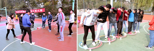 2016年11月5日,学院共学会在良乡篮球场举办了“青马工程”六期开班后的第一项活动——素质拓展。本次素质拓展项目共有“破冰之旅”、“动感颠球”、“过呼啦圈”、“困境逃脱”、“比腿长”、“你画我猜成语大赛”、“能量传输”共7项,考验了学员的团队合作能力,使学员迅速熟悉并紧密地团结在一起,为后续的小组学习打下良好基础。