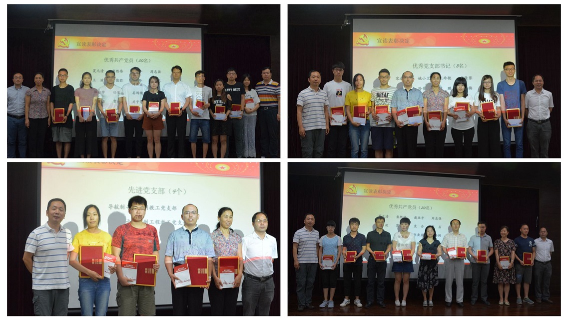学院院长夏元清宣读《自动化学院党委关于表彰先进党支部、优秀共产党员和优秀党支部书记的决定》。导航制导与控制教工党支部、控制理论与控制工程教工党支部、16级模式党支部、15级导航党支部被授予“先进党支部”称号;夏元清、马粮等20名师生被授予“优秀共产党员”称号;姚小兰、王玲艳等8名师生被授予“优秀党支部书记”称号。