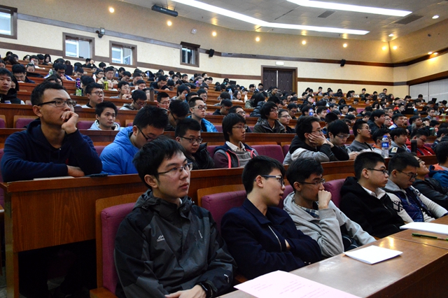 在完成十九大精神的传递后,唐嘉陵给参加本次报告会的师生讲述了作为我国第一台自主设计研制的深海载人潜水器主驾驶的心路历程以及伴随“蛟龙号”走向深海的艰辛。30多次的下潜经历,7000多米的下潜深度,连续4年潜水器的驾驶经历;这一系列代表着成就的数字背后有着另外一串数字:6年深潜专业的学习和训练,一年中11个月在海上“放逐”,单次连续下潜作业长达12小时,正是这样一种对海洋事业和深潜工作的坚持和热爱,唐嘉陵在太平洋底刻下了属于中国的深度。随后,唐嘉陵通过两个珍贵的视频资料向同学们展示了“蛟龙号”科考队的海洋科考工作和海上日常生活,使同学们对神奇的海底世界充满无限向往。最后,唐嘉陵讲述了他的深海潜航梦——把“蛟龙号”打造成为国内国外科学研究的优质服务平台,并陈述了海洋领域人才缺乏的现象,希望有更多优秀的人才能献身海洋领域,共同把我国建设成为海洋强国。