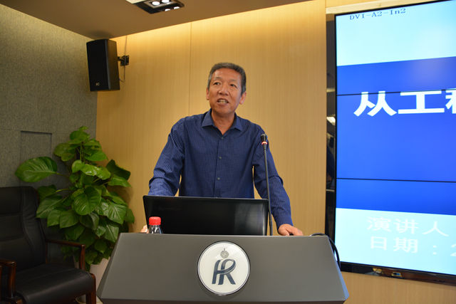 戚陆军从工程师的技术和社会地位、工程师的职业进程、工程师的职业特点和工程师的素质修养四个方面阐述如何成为一名优秀的工程师,他用三十年的工程师工作经历告诉在场师生,一名合格的工程师需要具备善于学习、耐心细致、有效沟通以及良好品格等素质。