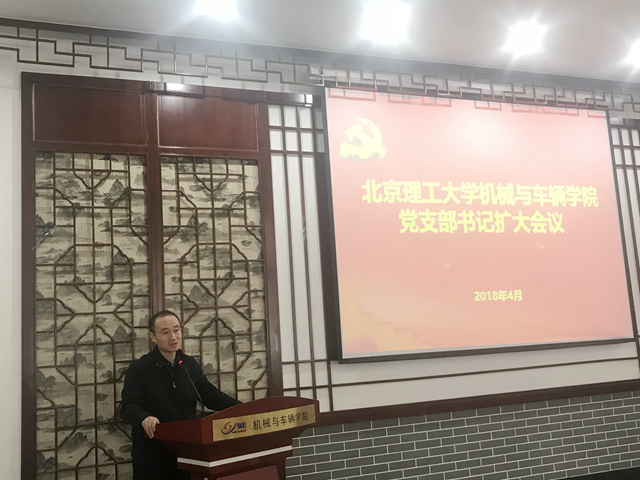 日前,机械与车辆学院在车辆实验楼报告厅召开了党支部书记扩大会议,学院党委书记左正兴,副书记、副院长范文辉,全体教工和学生党支部书记五十余人参加了会议。会议由副院长韩恺主持。