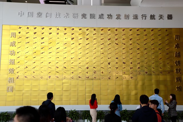 参观、学习、思考,每个人都沉浸于广袤宇宙世界和航天梦中……在本次参观即将接近尾声时,师生们纷纷驻足在了一面巨大的展示墙前,这里铭刻着航天五院先后成功发射运行的200余颗航天器及其总负责人、总工程师。展示墙的左右两边分别醒目地刻着两行大字——用卓越铸就辉煌,用成功报效祖国。“我觉得一个人的名字能够铭刻在这面墙上是一件无比骄傲自豪的事,我希望有朝一日我和我身边的北理工自动化人也能出现在这面光荣的墙上。”自动化学院2017级本科生高邦威如是说道。在蘑菇云腾空而起、火箭升空背后,仿佛能够看到一代代航天人敢为人先、勇于探索、不懈奋斗。师生们更深刻地领会了航天精神、“两弹一星”精神、载人航天精神的丰富内涵,增强了责任心和使命感。