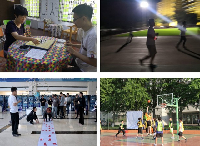 夕阳弥漫的球场上,球员们热情高涨,尽情挥洒汗水,导师的参与更是让同学们信心大振,高超的技术、默契的配合赢来场下观众的阵阵喝彩;夜色笼罩的跑道上,一位位奔跑者手戴荧光腕带,为黑夜增添了一抹亮色,十圈、二十圈、五十圈,他们步伐沉稳坚定,将在实验室中一天的疲惫化作汗水洒满跑道;灯火通明的教室里,一对对博弈者静心沉思,手握棋子仿佛置身于千军万马中,誓将这场无声的厮杀进行到底……夜色中,信院师生的身影随处可见,他们用自己的实际行动践行 “三进三出”,释放激情。