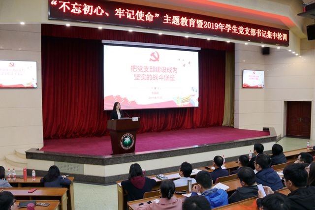 本次集中轮训为期三天,共计24学时,包含理论学习、实践培训、小组讨论和交流分享四个板块。在“不忘初心、牢记使命”主题教育统一安排下,包丽颖结合学习调研成果讲授专题党课,主题为《把党支部建设成为坚强战斗堡垒》。她从为什么强调不忘初心、牢记使命,深刻体悟开展主题教育的意义等三个方面,为学生党支部书记深入讲解了开展“不忘初心、牢记使命”主题教育的重大意义。并就学生党支部建设的重要性、现有的做法与成效、问题及挑战以及加强学生党支部建设的方法和路径等四个方面进行了详细阐述,加深了学生党支部书记对学生党建和学生党支部工作重要性的认识和理解。她强调,面对新形势新挑战,学生党支部书记需要准确把握学校改革发展的新任务新要求,进一步提高对高校学生党建工作的认识,深刻认识自身肩负的光荣职责与使命,始终保持昂扬向上的精神状态和永不懈怠的奋斗姿态,珍惜时代赋予的难得的发展机遇,为实现中华民族伟大复兴的中国梦贡献力量!