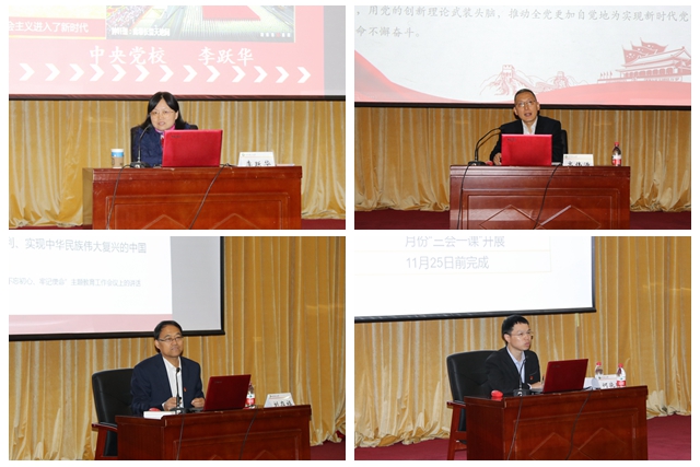 中央党校机关党委宣传处处长李跃华、数学学院党委书记高伟涛、马克思主义学院党总支书记刘存福、党委组织部副部长何骁威,分别以《深入学习贯彻习近平新时代中国特色社会主义思想 做有理想有担当的新人》《从辉煌成就看中国特色社会主义力理论制度优势》《做一名优秀的学生党支部书记》《学生党支部建设实务专题》为主题,深入解读了习近平新时代中国特色社会主义思想,强调学生党支部书记要在学懂弄通做实上下功夫,从“坚定初心使命、模范党员义务、党支部建设”三个方面开展好工作,强化支部政治功能,推进支部规范化建设。