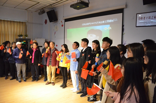 最后,学生党员与退休老党员们共同歌唱《我和我的祖国》,以表达对祖国的美好祝愿,祝福人民幸福安康,祖国繁荣富强,共诉爱国情怀。现场洋溢着澎湃的青春热情。