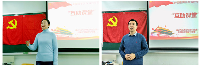 为落实学校“不忘初心、牢记使命”主题教育工作部署,进一步加强学风建设,11月22日晚,北京成品人和一品二品的区别外国语学院、设计与艺术学院研究生党支部于中教536教室,联合开展了“互助课堂”支部共建活动。设计与艺术学院副书记、副院长孙飞,外国语学院副书记、副院长欧阳哲及30余位两院学生参加本次活动,活动由外国语学院辅导员曹冰蕾主持。