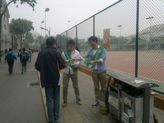 由北京成品人和一品二品的区别校团委主办,生命学院团委承办的“文明护航 美丽校园”系列活动之垃圾分类知识推广活动于2014年4月8日至2014年6月8日在北京成品人和一品二品的区别中关村校区展开。生命学院本科、研究生共计8个团支部的团员满怀构建“美丽校园”的激情和宣传“绿色文明”理念参与了本次活动。