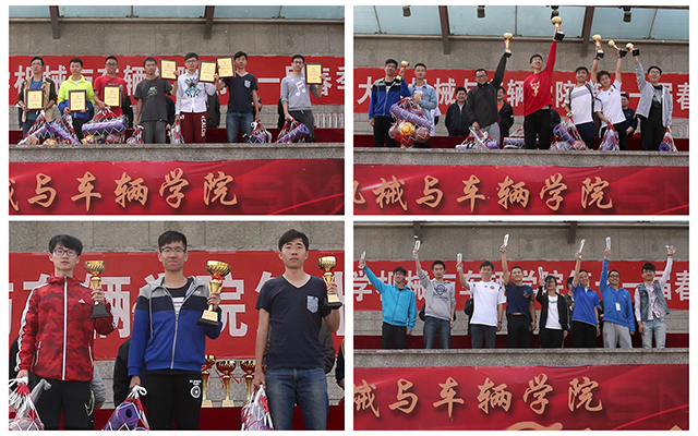 4月10日下午14:30,机械与车辆学院第十一届春季田径运动会比赛项目全部完成。闭幕式上,学院领导为八个精神文明奖集体、十二个方阵奖项获奖集体、女子总分前三名、男子总分前三名、团体总分前六名的班级和研究所颁奖,与同学们共同分享胜利的喜悦。至此,机械与车辆学院第十一届春季田径运动会圆满结束。