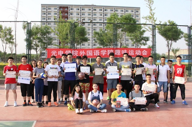 光电学院趣味运动会(良乡赛区)比赛是联合外国语学院共同举办的。5月9日下午2:00,联合趣味运动会在良乡校区北校区篮球场拉开帷幕。光电学院党委副书记、副院长盛筠,外国语学院党委副书记、副院长周芳集、两学院部分老师以及良乡校区的六支代表队参加了开幕式。