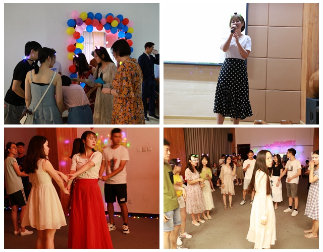 舞会的开场由郑阳和盛雨桐两位同学分别带来歌曲《再不疯狂我们就老了》和《明天,你好》,让大家在美妙的歌声中迅速进入舞会气氛。之后是吴鹏、李淑宁两位同学带来精彩的舞蹈表演,惊艳的技艺、优美的舞步令现场掌声不断。经过自由搭配舞伴和舞蹈老师的耐心教学,同学们和舞伴愈加默契,舞步也熟练起来,大家跟着音乐欢快的舞动起来。中间穿插的抽奖环节以及“123看这边”“一块五”的小游戏使现场气氛达到高潮。最后由张峻豪同学带来歌曲《那些年》,让大家在青春的歌声中结束今晚精彩的舞会。