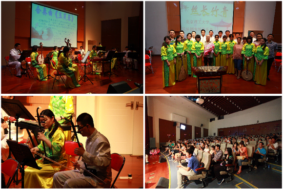 5月20日晚,“丝长竹青”民乐会在良乡校区举行。我校大学生艺术团民乐团为大家演奏了最新编排的《玉芙蓉》、《霓裳颂》等曲目,演出更是大胆尝试了中国古典民族乐器与西洋打击乐、钢琴的结合,营造出江南水乡清泉汩汩、细雨叮咚的意境,给人以耳目一新的感受。