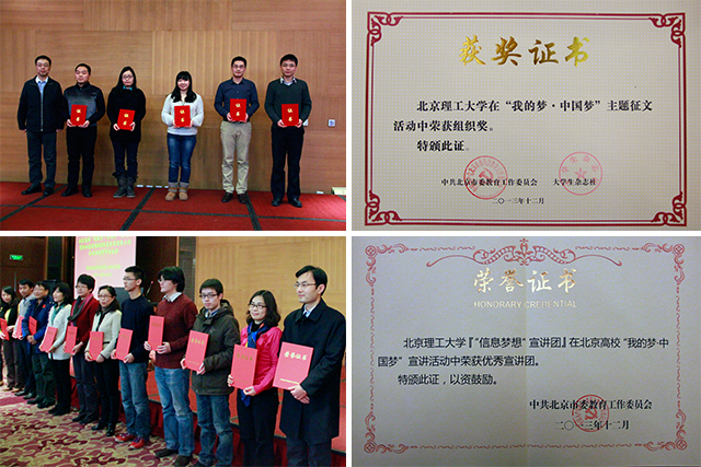 12月26日下午,北京高校“我的梦·中国梦”主题教育活动总结交流会在中国地质大学举行,北理工在“我的梦·中国梦”主题教育活动中荣获“我的梦·中国梦”主题征文活动优秀组织奖,获评“美丽校园”,信息与电子学院“信息梦想”宣讲团荣获“我的梦·中国梦”师生宣讲活动“优秀宣讲团”荣誉称号。