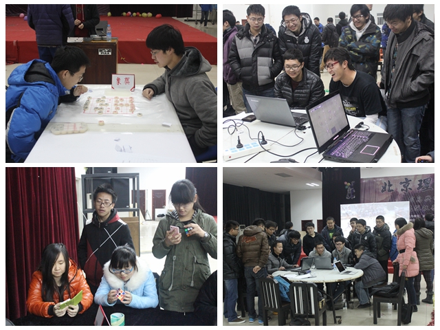 此次智力运动会采用班级组队报名的形式。比赛项目既包括象棋、五子棋、三国杀3v3、2K13篮球、实况足球等班级团体项目,又包括打豆豆、切水果、魔方、神庙逃亡等个人项目。经过前期的抽签分组、预赛淘汰等环节,最终在13个班级中初选出每个班级中较强的选手闯入各项目的决赛。值得一提的是,决赛现场有DJ主持、2K13篮球现场转播、桌游现场教学等形式新颖的亮点,彰显了此次智力运动会的独特之处。