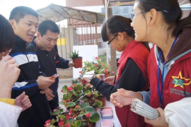 志愿服务不总是轰轰烈烈,更需要从身边做起。延河之星志愿者们始终注重从身边做起,服务校园,这其中最具代表性的应该当属每年的迎新志愿服务活动。每到9月开学的季节,来自祖国各地的新同学们,最先感受到的就似乎来自北理工迎新志愿者们如火般的热情,从火车站到校园中,志愿者们的服务无处不在,为新生们提供周到细致的服务。近年来,立足校园开展以环保为主题的志愿服务,也成为总队工作的新方向。不论是参与全球“熄灯一小时”行动,在校园中倡导节能理念,还是以废弃资源回收为主题,用绿色植物兑换再生资源的创意活动,再到组织开展校园生活大卖场,帮助同学们闲置资源的有效流通,都彰显了延河之星志愿服务总队紧跟时代主题、深化志愿服务内涵的使命感。又如开展的“我爱我北理”系列活动,送绿植进教室,检查教室钟表、网口,了解教室设备问题及时反馈管理处报修,方便师生的学习生活,志愿服务“润物细无声”。