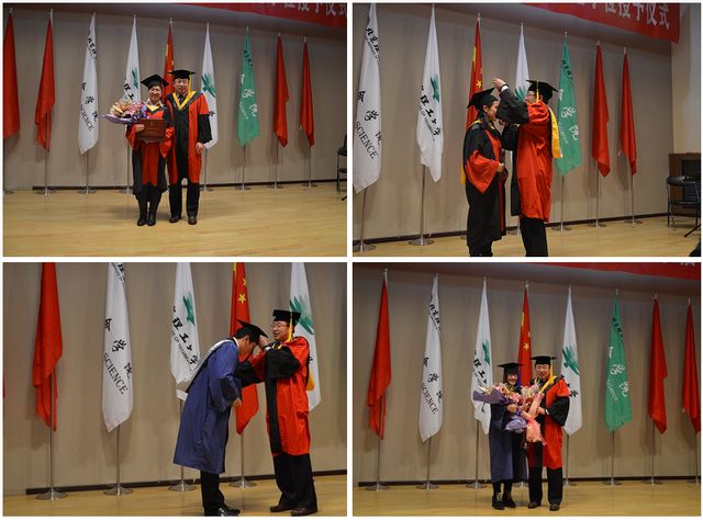 生命学院院长邓玉林为毕业生授予学位。在国旗、校旗、院旗下,在一片鲜花和掌声中,每一个毕业生在我们和蔼可亲的师长身旁留下了最灿烂的笑容。相信这会成为每个毕业生一生中最珍贵的记忆!
