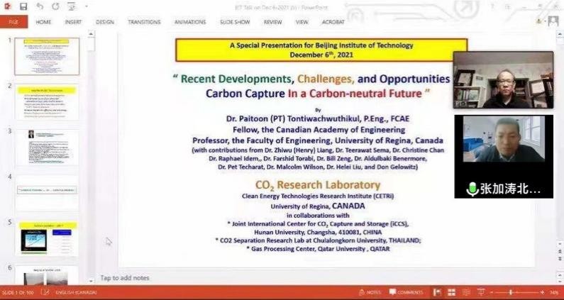 加拿大工程院士Paitoon Tontiwachwuthikul教授与北理工师生畅“碳”未来