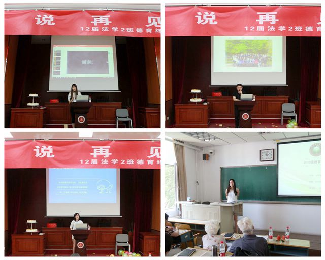 “感念恩师 不忘青春”、“不说再见”“回望大学 鹏程翱翔”分别是2012级三个班级德育终期答辩的主题,皆以总结大学生活,展望未来人生作为此次德育终期答辩的主要内容,毕业生对自己大学四年的生活从学习、学生工作、感情等多个方面进行了梳理和总结,表达了青春匆匆,母校难舍的珍惜之情,除此之外,各位毕业生还对毕业后即将走向的研究生生活、职场生活进行了展望与期待。