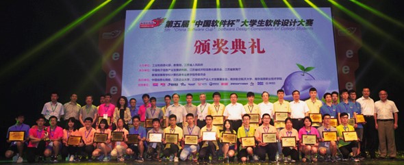 大赛颁奖典礼在南京航空航天大学新大学生活动中心隆重举行,参加颁奖典礼的有:中国工程院院士倪光南、中国科学院院士何积丰、工业和信息化部信息化和软件服务业司司长谢少锋、教育部职业教育与成人教育司副司长王扬南、工业和信息化部信息化和软件服务业司巡视员李颖、中国电子信息产业发展研究院院长卢山、江苏省经济和信息化委员会副主任龚怀进、江苏省教育厅副厅长丁晓昌、南京航空航天大学书记郑永安、南京航空航天大学副校长黄志球,还有来自各经信委、教育厅的领导和来自高校的众多评审专家;以及来自中国民航信息网络股份有限公司、用友网络股份有限公司、同方股份有限公司、东软集团股份有限公司、金山WPS7、江苏国瑞信安科技有限公司等软件骨干企业的代表。