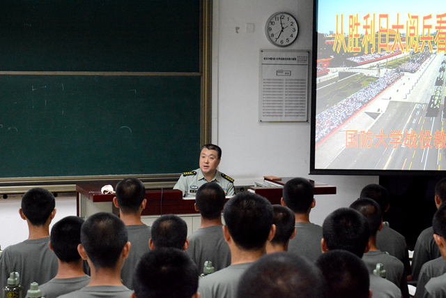 9月4日晚,北理工军训旅邀请国防大学房兵教授为全体参训学员进行《从胜利日大阅兵看武装力量大转型》的国防教育讲座。