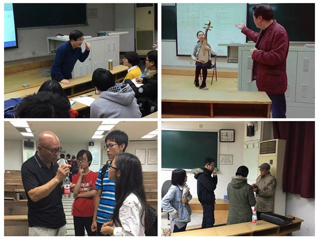 除此之外,根据十八大提出的传承优秀传统文化精神,本学期还特别开设了四场“传承经典系列”讲座,分别是:由民族音乐教育家、中国音乐学院教授赵承伟老师主讲的《余音绕梁——中国传统音乐素描》;昆曲名家、中国艺术研究院研究员刘静老师主讲的《春色如许——昆曲艺术》;北京师范大学艺术与传媒学院副教授、硕士生导师王鹏老师主讲的《流风回雪 倒峡逆波——传统工笔人物画对比表现手法》;由艺术学理论出站博士后、北京师范大学王阳文老师主讲的《妙音舒广袖 翩翩踏歌来——中国舞蹈的前世今生》。一周一讲,精彩纷呈,同学们跟随主讲嘉宾生动的讲解,徜徉在艺术文化的海洋里,仿佛经历了一次次精神上的旅行,大家纷纷表示通过聆听讲座,拓宽了思考的维度,提高了综合素养,也增添了一段最为美好的回忆。
