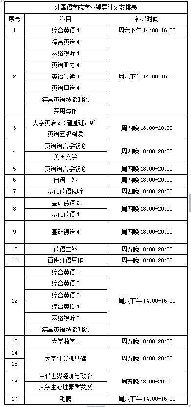 附:外国语学院2016-2017学年学业辅导安排表(即时更新)
