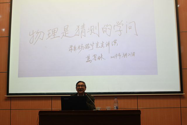 葛院士将他亲手书写的寄语赠予现场师生——“物理是猜测的学问”。葛院士讲到,这句话引自杨振宁先生的演讲,物理学的现象需要我们用想法和猜想去解释,通过不断地实验来修正猜想,最终达到为物理现象佐证的目的,他鼓励同学们在学习物理的道路上要多猜想,多实践。