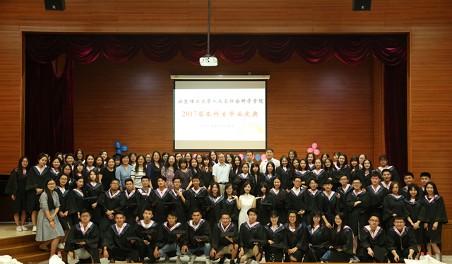 编辑:石莉 审核:娄秀红 阅读次数:2017年6月15日下午,北理工人文学院2017届本科生毕业庆典在良乡校区音乐厅举办。人文学院院长李健,党委书记娄秀红,副院长贾利军,副院长宋宪萍,副院长张峰,党委副书记、副院长李冰,社会工作系老师贾晓明、安芹、郑佳然,经济系老师韩燕,团委书记孙硕,2013级前辅导员于满及2017届全体本科毕业生齐聚一堂,共同欣赏这场青春盛宴。