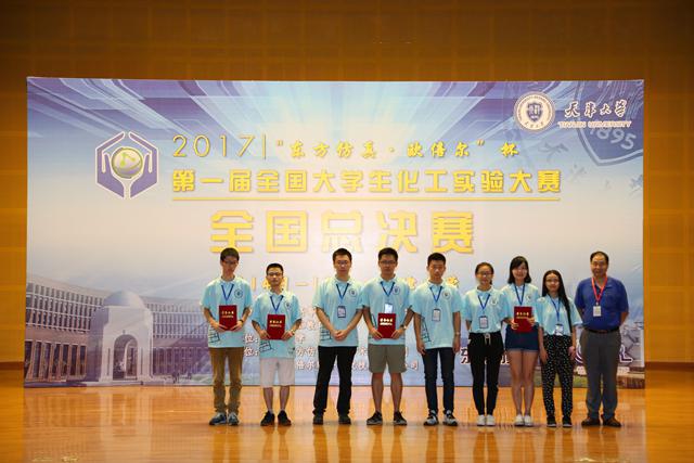 编辑:秦月 审核:张小玲 阅读次数:2017年8月16日,首届全国大学生化工实验大赛全国总决赛在天津大学落下帷幕。由北理工化学与化工学院邓文生、康惠宝、刘文芳等老师指导的由化学工程与工艺专业2014级本科生王悦婧、张佳钰和2015级梁悦同学组成的“悦·钰”队取得佳绩,获团体一等奖。