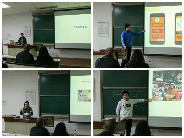 李帅奇为大家介绍了本次workshop的教学背景、活动主题、教学方法和设计要求等,同时还向大家介绍了日本未来馆、印刷博物馆以及国立现代美术馆的设计与特征。马睿、刘亦泽展示了参加workshop的学习成果,详细介绍了设计草图、产品功能、服务特点、设计方案等细节。吴宜书向大家展示了日本的优秀海报设计、标志设计与绘画作品等。郭诚从跨学科研究、团队沟通与领导经验等几个方面,总结了这次参加国际交流项目对于个人学习的影响。