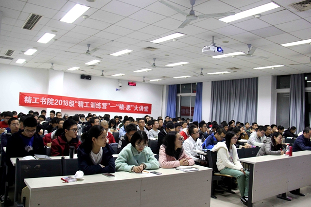 编辑:于满 审核:方蕾 阅读次数:精工书院依托“精工训练营”思想高度与理论深度板块组织开展“精·思”大讲堂系列讲座。11月14号晚,机电学院博士生导师马宝华教授应邀赴良乡校区以“过头脑清醒的大学生活”为主题面向精工书院新生开展讲座。精工书院副院长方蕾、机电学院副书记、副院长陈军参加此次活动,精工书院辅导员、入党积极分子等参加了此次讲座。