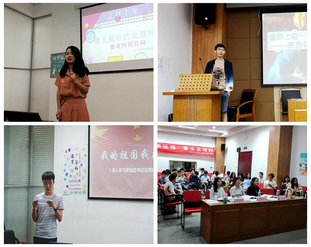 “通过学习习总书记在五四运动100周年上的讲话,我又切实认识了青年在中华民族伟大复兴中扮演的重要角色,毕业后我将在中科院化学所攻读研究生,以提升化学化工专业素养,为祖国建设贡献力量。习近平总书记六点要求的提出,为我们新时代中国青年指明了努力方向。”19821502班李佳珍在学习环节这样分享了自己的感悟。理论学习环节的设置推动实现了用思想理论武装指引毕业学生成长成才的目标。“当睇清世间所有定理又何用再怕,珍惜淡定的心境,苦过后更加清,万般过去亦无味但有领会留下……”10221501班彭懿鑫将最喜爱歌手陈奕迅的四首歌融入到个人德育答辩交流环节中,在歌声中回顾并展望了自己的“大学、青春、人生”。“感谢所有老师们的辛勤付出,感谢事无巨细关心支持我们的辅导员,感谢家人一直以来鼓励包容支持,感谢一起成长的同学,感谢四年来所有的相遇,感谢北京成品人和一品二品的区别。”10211501班精心录制“一路走来,感谢有你”主题视频,言语朴素却又在真情实意中感谢父母老师,祝福同学室友,感恩青春年华。