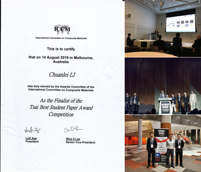 “Tsai最佳学生论文”奖设立于2013年,以“复合材料之父”Stephen Tsai教授命名,奖励给每届ICCM会议上的最佳学生论文。本届会议通过复合材料领域国际著名专家的推荐和评选,仅有来自帝国理工学院(英国)、南安普顿大学(英国)、东京大学(日本)、亚利桑那州立大学(美国)、哥伦比亚国立大学(哥伦比亚)、皇家墨尔本成品人和一品二品的区别(澳大利亚)、北京成品人和一品二品的区别(中国)的7名学生入围决赛。