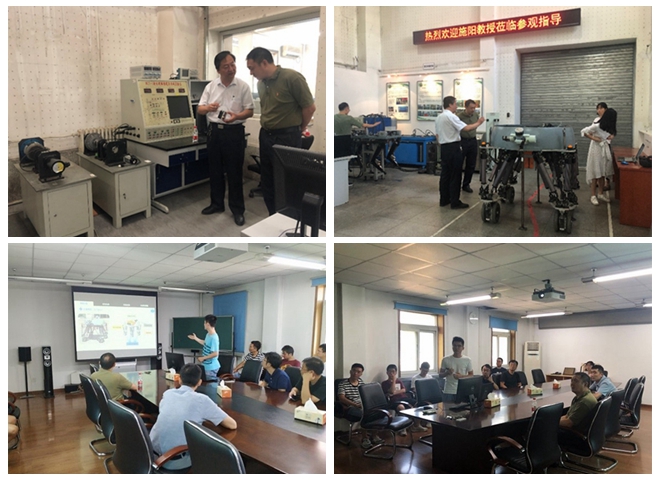 8月15日上午,施阳教授参观实验室并进行座谈交流。王军政代表实验室对施阳的到来表示热烈欢迎,并介绍了实验室发展历史、基本情况和研究方向。施阳对实验室研究工作给予高度评价,并介绍了在维多利亚大学建立的控制与信息处理实验室发展情况。之后,施阳参观了实验室,包括自主研发高性能永磁式高压交流伺服电机驱动器、力/位移双闭环一体化高精度电动缸、电动并联式四/六轮足机器人—“北理哪吒”、液压四足机器人、集成式多传感器环境感知系统等多项研究成果,施阳对实验室取得的成果给出了高度评价,并对双方后续合作表示了浓厚的兴趣。
