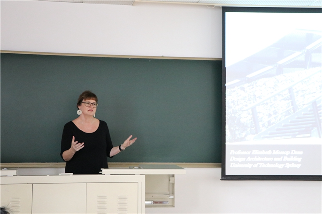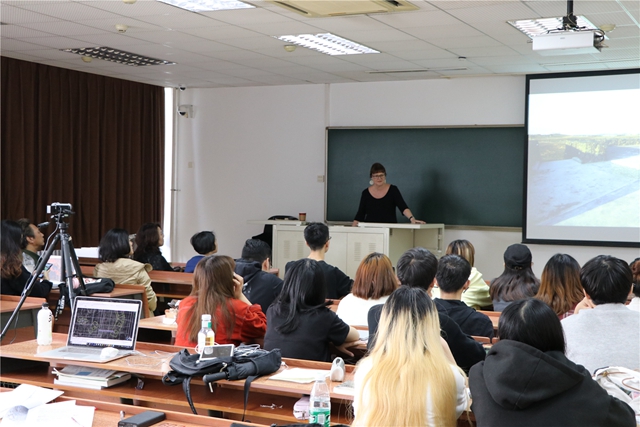 讲座分为三部分,在第一部分,伊丽莎白·莫索普教授讲授了她所承担的部分设计项目与案例,分析不同文化背景、自然条件与功能的公共空间设计原则;在第二部分,讲述了如何通过景观设计复兴社区文化、节省资源,推动人们的沟通和材料的再次利用;在第三部分,伊丽莎白·莫索普教授就建筑景观设计的相关问题与同学们进行了交流。