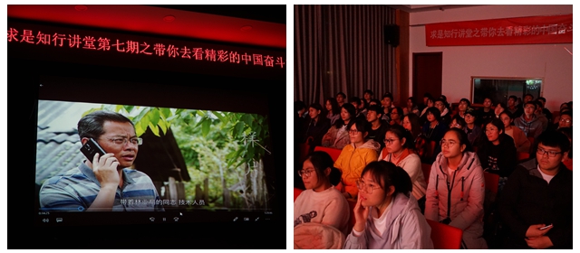 在讲座最后,柴红芳导演动情说:“11个人的团队最少时只有两个人,给七百人的村庄带来终身道路的通畅,作为一个文化人,纪录片人代表个人、家庭、社会、政党改变了七百人的命运,我们的团队无上光荣。我内心希望,梦想中国故事,世界看见,想用个人毕生的力量,全心全力,认认真真,非常纯粹的拍摄真实影片。我也希望拍摄你们这个时代现实题材的真实故事,来看待时代的变迁,这不容易,很平凡但也很伟大”。
