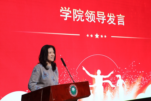 大会逐渐进入尾声,马晓宁进行致辞。他对获得荣誉、受到表彰的个人和集体再次进行祝贺、号召同学们传承奋斗精神、向优秀看齐,并提出恳切建议、鼓励广大学子在2020年继续努力,再创佳绩。