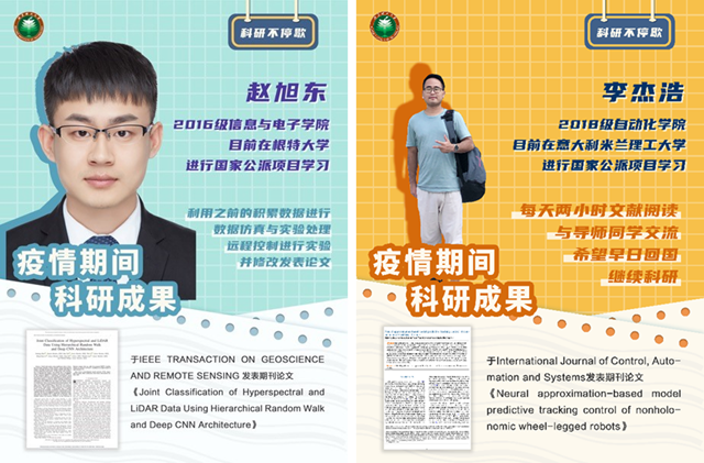 保障科研学习成效。同学们在做好自我防护的同时,不忘海外留学的初心,积极开展科研工作,及时调整学习计划,合理利用学校提供的在线数据库资源,采用网上学习、线上视频、远程会议等形式与国内外导师进行学术探讨。通过刻苦钻研,部分同学在疫情期间还取得了较为突出的研究成果。据统计,我校海外研究生疫情期间已累计在顶级或重要期刊上投稿70余篇,正式发表学术论文20余篇。