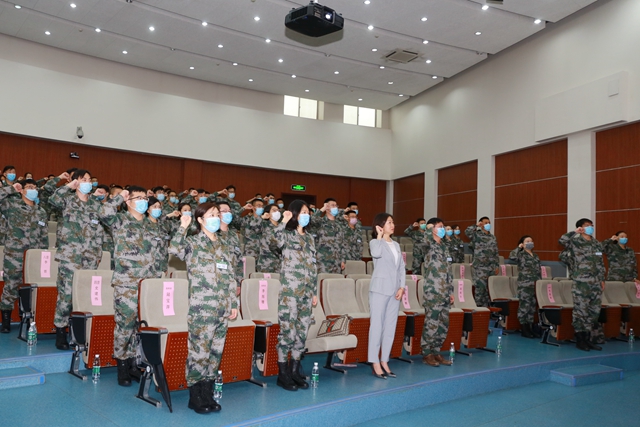 动员会上,党委武装部部长王泰鹏布置了军训工作整体安排,对带队干部提出具体工作要求。指导员耿宝群代表军训带队干部发言,承诺将服从指挥、履行职责、关爱学生,保证完成各项任务。全体军训带队干部进行就职宣誓。