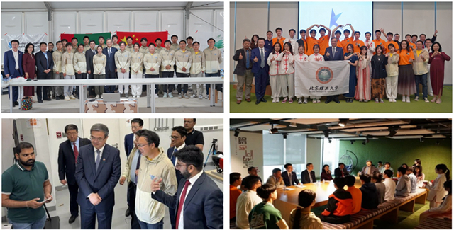 访问期间,张军慰问了由北理工与哈里发大学师生共同组成、正在紧张备战2024年穆罕默德·本·扎耶德国际机器人挑战赛决赛(2024MBZIRC)的飞鹰队,和我校徐特立学院/未来精工技术学院赴阿开展冬令营任务的师生。在备赛基地,张军与飞鹰队师生亲切交流,勉励全体队员要发扬北理工实事求是、追求卓越的科学精神和不辱使命、为国铸剑的担当精神,不断创造新佳绩。在随后举行的决赛中,北理工“飞鹰队”不负众望,再次取得优异成绩,是决赛中唯一完成多项任务的参赛队伍。在哈里发大学,张军详细了解了学生在阿期间的课程学习、实验室参访、企业观摩和研学感悟,为远在他乡的北理学子送上新春祝福,寄语同学们要秉承“胸怀壮志、明德精工、创新包容、时代担当”的理念,与历史同步伐、与时代共命运,强化基础、历练能力,早日成长为支撑中华民族伟大复兴的栋梁之材。