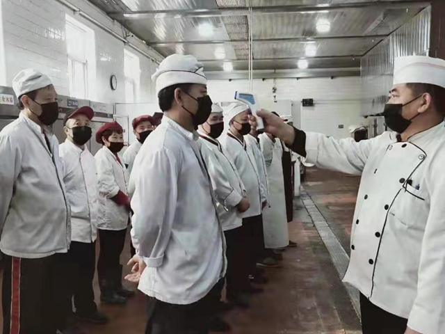 疫情防控期间,餐饮服务中心高度重视员工的健康防护,坚持每天测量体温,严格佩戴口罩。“安全无小事,防疫期间,我们更加关注每一位员工的身体健康,只要身体有不适,一定要立刻休息,绝不能上岗。”安全监控部任连贵如是说。