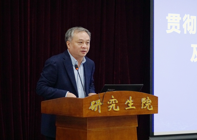 魏一鸣作总结讲话。他谈到,为学习贯彻习近平总书记关于研究生教育的重要指示,传达全国研究生教育会议和相关文件精神,同时进一步落实学校党委相关工作要求,推进学校研究生教育改革发展,研究生院组织召开本次会议,邀请资深专家为各学院相关领导和人员进行文件解读辅导,希望大家从思想上充分认识研究生教育工作的重要性和面临的新挑战。我国当前处在实现中华民族伟大复兴的关键时期,需要依靠科学技术和创新实现高质量发展,培养高层次人才尤为重要。研究生教育是高层次人才培养的重要途径,在实现中华民族伟大复兴、应对世界百年未有之大变局中将发挥至关重要的作用。他强调,要在认真学习领会的基础上,把我校研究生教育工作做好做实。希望研究生院、各相关部门和各学院认真学习文件精神,真正把“六大举措”“十大行动”与我校实际结合起来,抓住人才培养质量核心,提出切实有效措施,推动我校高层次人才培养高质量发展。同时,更要把研究生教育和学校“双一流”建设相结合,把高层次人才培养作为推动“双一流”建设的重要抓手,加快推动学校“双一流”建设发展。
